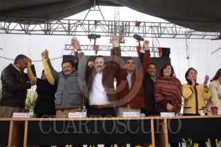 ZACATECAS, ZACATECAS 31ENERO2010.- Senadores del PRD dan muestras de apoyo a Antonio Mejia Haro quien esta tarde tomo protesta esta mañana candidato como gobernador del estado de Zacatecas. FOTO: SÁSHENKA GUTIÉRREZ/CUARTOSCURO.COM