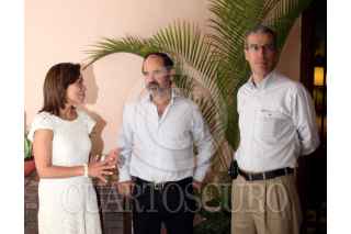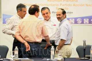 MERIDA, YUCATAN, 31ENERO2010.- El secretario general del PAN el senador José González Morfin, Heriberto Félix Guerra, Secretario de Desarrollo Social y el Coordinador Parlamentarios del PAN en el Senado de la República Gustavo Madero durante la reunión plenaria de los senadores panistas. FOTO: CUARTOSCURO.COM
