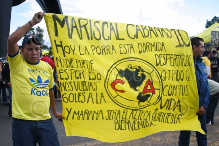 MÉXICO, D.F., 31ENERO2010.- Miles de aficionados se dan cita en las inmediaciones del estadio Azteca para poder acceder al partido entre las Aguilas del América contra los Indios de Ciudad Juárez. En la imagen, Un niño pone a la venta playeras del ariete americanista Salvador Cabañas. En días pasados, el futbolista paraguayo recibió un impacto de arma de fuego en la cabeza, lo que lo mantiene en grave estado de salud. FOTO: MISAEL VALTIERRA/CUARTOSCURO.COM