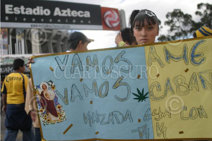 MÉXICO, D.F., 31ENERO2010.- Miles de aficionados se dan cita en las inmediaciones del estadio Azteca para poder acceder al partido entre las Aguilas del América contra los Indios de Ciudad Juárez. En la imagen, Un niño pone a la venta playeras del ariete americanista Salvador Cabañas. En días pasados, el futbolista paraguayo recibió un impacto de arma de fuego en la cabeza, lo que lo mantiene en grave estado de salud. FOTO: MISAEL VALTIERRA/CUARTOSCURO.COM