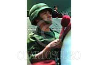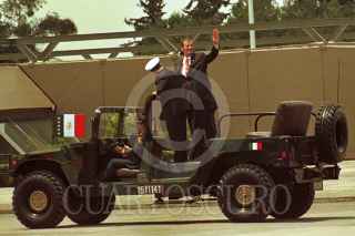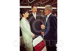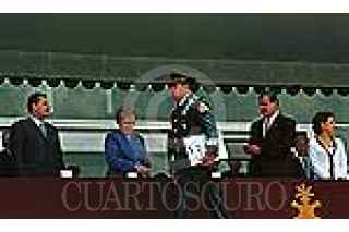Carlos Abascal Carranza, secretario de Trabajo a lado de su esposa y Raúl Muñoz Leos, director de PEMEX , conversan antes de iniciar la comida en honor a la clausura y apertura de cursos de los planteles militares. FOTO: Eunice Adorno/CUARTOSCURO.COM