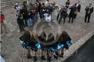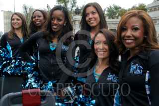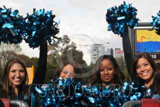 MÉXICO, D.F., 01FEBRERO2010.- Un grupo de porristas del equipo de Fútbol Americano Las Panteras de Carolina, "Top Cats"; realizaron un recorrido en turibus por diversos puntos turísticos del centro de la Ciudad. FOTO: ENRIQUE ORDÓÑEZ/CUARTOSCURO.COM