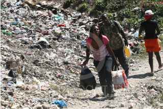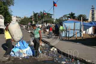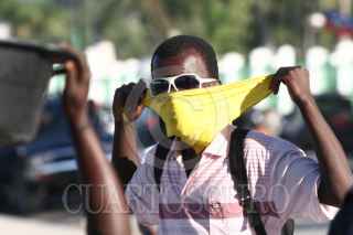PUERTO PRINCIPE, HAITI., 01FEBRERO2010.- Haiti, se encuentra al borde de una epidemia debido a que carecen de servicios básicos como el del sanitario, miles de mujeres preparan alimentos en la vía pública, el sistema de agua potable es escaso, la basura es visible en todas las calles de Puerto Principe y el olor putrefacto se mezcla con el de humanos que se quedaron atrapados en los escombros. Los cubrebocas es parte esencial para transitar por las calles de Haiti. FOTO: SAÚL LÓPEZ/CUARTOSCURO.COM