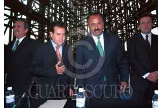 Guillermo Prieto Treviño, directivo de la Bolsa Mexicana de Valores, Rene Júarez gobernador de Guerrero y Carlos de Isla Carry, anunciaron la cotización de bonos por parte del estado guerrerense en la BMV. FOTO: Moisés Pablo/CUARTOSCURO.COM
