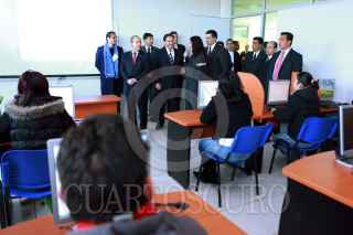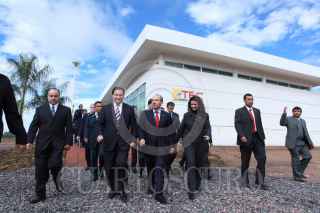 PABELLON DE ARTEAGA, AGUASCALIENTES, 04FEBRERO2010.- Felipe Calderón Hinojosa, Presidente de México, acompañado de Luis Armando Reynoso Femat, Gobernador de Aguascalientes durante la inauguración del Instituto Tecnológico de Pabellón de Arteaga. FOTO: ALFREDO GUERRERO/CUARTOSCURO.COM
