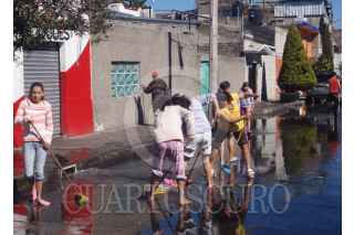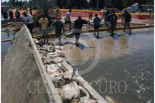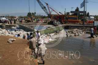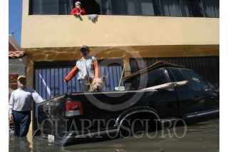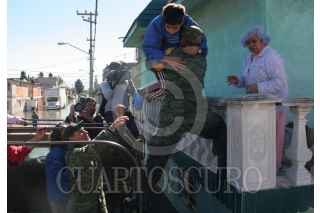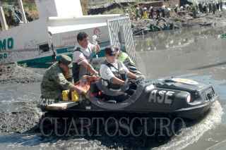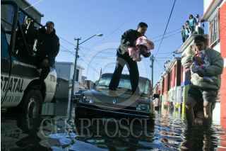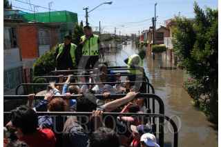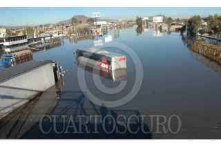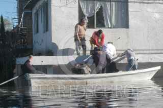 NEZAHUALCÓYOTL, ESTADO DE MÉXICO, 05FEBRERO2010.- Vecinos de la colonia Impulsora construyen barricadas para no pemitir que la inundación se extienda debido al desbordamiento del Río de los Remedios. FOTO: GALO RAMÍREZ/CUARTOSCURO.COM