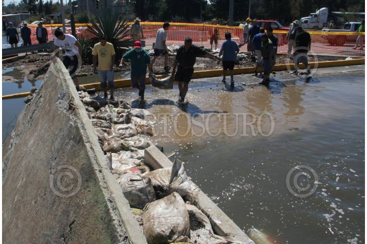 NEZAHUALCÓYOTL, ESTADO DE MÉXICO, 05FEBRERO2010.- Vecinos de la colonia Impulsora construyen barricadas para no pemitir que la inundación se extienda debido al desbordamiento del Río de los Remedios. FOTO: GALO RAMÍREZ/CUARTOSCURO.COM