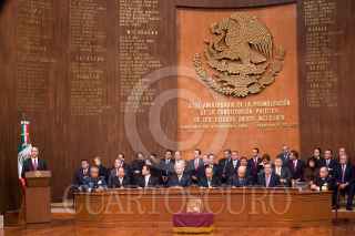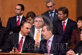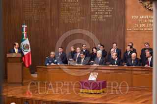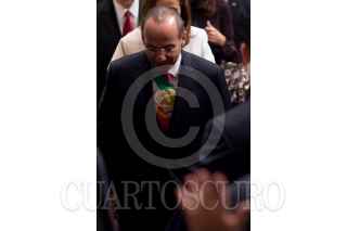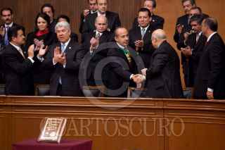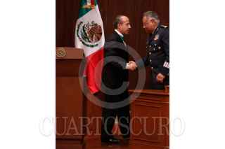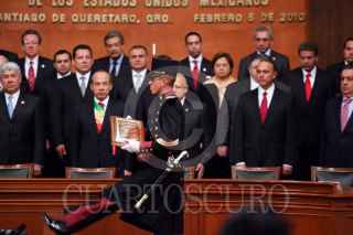 QUERÉTARO, QUERÉTARO, 05FEBRERO2010.- Felipe Calderón, Presidente de México y Guillermo Galvàn, Secretario de la Sedena, durante la celebración del Aniversario XCIII de la Constituciòn Mexicana, realizad en el Teatro de la República. FOTO: CUARTOSCURO.COM