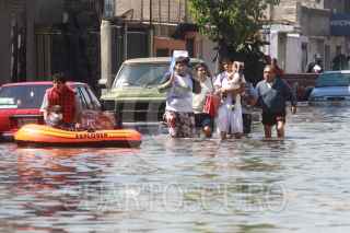 MÉXICO, D.F., 05FEBRERO2010.- Elementos del Escuadrón de Rescate y Urgencias Médicas (ERUM) de la policía capitalina continuan con las tareas de rescate en la colonia Arenal que quedo inundada al desbordarse el río de los Remedios. FOTO: SÁSHENKA GUTIÉRREZ/CUARTOSCURO.COM