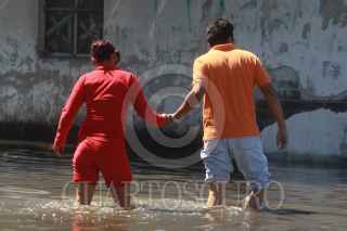 MÉXICO, D.F., 05FEBRERO2010.- Elementos del Escuadrón de Rescate y Urgencias Médicas (ERUM) de la policía capitalina continuan con las tareas de rescate en la colonia Arenal que quedo inundada al desbordarse el río de los Remedios. FOTO: SÁSHENKA GUTIÉRREZ/CUARTOSCURO.COM