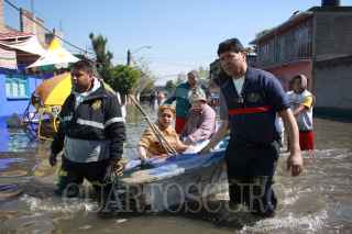 MÉXICO, D.F., 05FEBRERO2010.- Elementos del Escuadrón de Rescate y Urgencias Médicas (ERUM) de la policía capitalina continuan con las tareas de rescate en la colonia Arenal que quedo inundada al desbordarse el río de los Remedios. FOTO: SÁSHENKA GUTIÉRREZ/CUARTOSCURO.COM