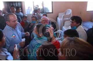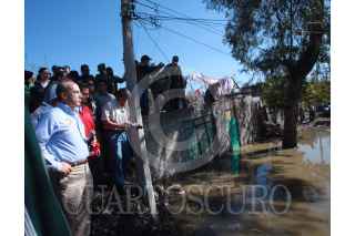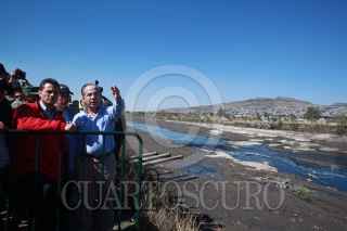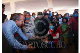 VALLE DE CHALCO, ESTADO DE MEXICO, 05 FEBRER0 2010.- Felipe Calderon Presidente de México, acompañado por el Gobernador del Estado Enrique Peña Nieto, realizaron un recorrido por la zona afectada por las lluvias. FOTO: ALFREDO GUERRERO/CUARTOSCURO.COM