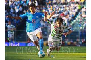 MÉXICO, D.F., 06FEBRERO2010.- Luis Landín disputa el balon con Vicente Matias durante el partido correspondiente de la jornada cuatro del Torneo Bicentenario 2010, entre La Máquina Cementera y el Santos Laguna, quedando un marcador final de 2-0 favor Santos. FOTO: SÁSHENKA GUTIÉRREZ/CUARTOSCURO.COM