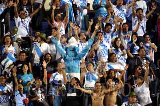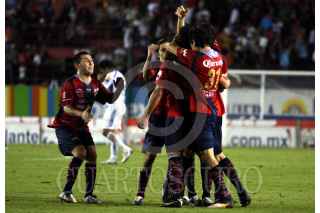 CANCUN, QUINTANA ROO, 06FEBRERO2010.- Jugadores de los potros de Hierro del Atlante, festejan su anotación ante los Camoteros del Puebla en el partido que empataron 1-1 en el estadio Andres Quintana Roo. FOTO: AMARANTA PRIETO/CUARTOSCURO.COM
