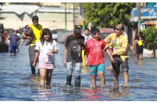 MÉXICO, D.F, 07FEBRERO2010.- Vecinos de la colonia el Arenal en la Delegación Venustia Carranza, caminan por las aguas negras que desde el jueves mantiene inundadas sus calles. FOTO: SÁSHENKA GUTIÉRREZ/CUARTOSCURO.COM