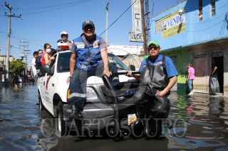 MÉXICO, D.F, 07FEBRERO2010.- Vecinos de la colonia el Arenal en la Delegación Venustia Carranza, caminan por las aguas negras que desde el jueves mantiene inundadas sus calles. FOTO: SÁSHENKA GUTIÉRREZ/CUARTOSCURO.COM