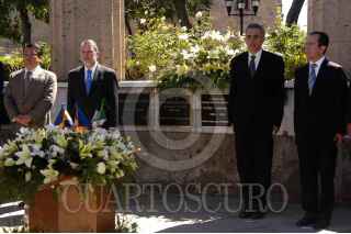 GUADALAJARA, JALISCO, 07FEBRERO2010.- Emilio Gonzalez Marquez, Gobernador de Jalisco junto a Alberto Cardenas Jimenez, diputado por el PAN y Cesar Nava, Presidente nacional del PAN, durante la guardia de honor que montaron en la rotonda de los Jaliscienses Ilustres donde depositaron los restos del catedrático y humanista, Rafael Preciado Hernández. FOTO: CUARTOSCURO.COM