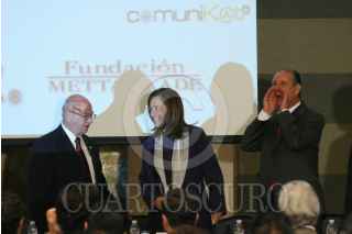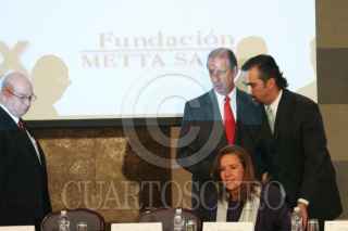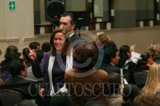 MÉXICO D.F., 08FEBRERO2010.- Margarita Zavala, esposa del presidente de México, acompañada de Isaac Moscatel, Director de Alianza Educativa Eureka, Rogelio Casas y Jaime Salinas, acudió a la ceremonia de Inauguración del Congreso de Innovación Educativa 2010 y en la cual participo con una ponencia. Durante su ponencia retomo las palabras de su esposo, al mencionara “que hay que hablar bien de México” y lamento los actos violentos que se viven en el país, tomando como ejemplo el caso del futbolista, Salvador Cabañas. FOTO: GUILLERMO PEREA/CUARTOSCURO.COM