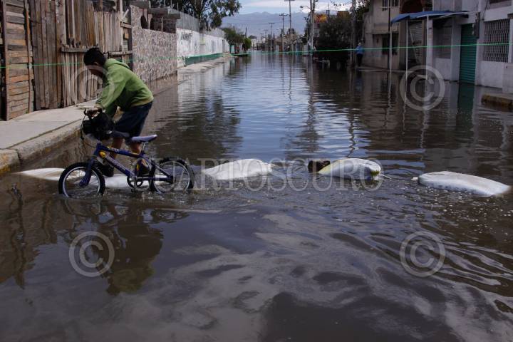 NEZAHUALCOYOTL, ESTADO DE MÉXICO, 08FEBRERO2010.- En la colonia Nezahualcoyotl, elementos de protección ni soldados han dezasolvado el agua que aun se encuentra en las calles debido al desbordamiento del Rió de los Remedios. FOTO: CUARTOSCURO.COM