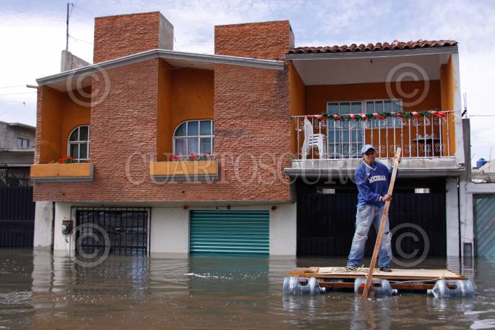 NEZAHUALCOYOTL, ESTADO DE MÉXICO, 08FEBRERO2010.- En la colonia Nezahualcoyotl, elementos de protección ni soldados han dezasolvado el agua que aun se encuentra en las calles debido al desbordamiento del Rió de los Remedios. FOTO: CUARTOSCURO.COM