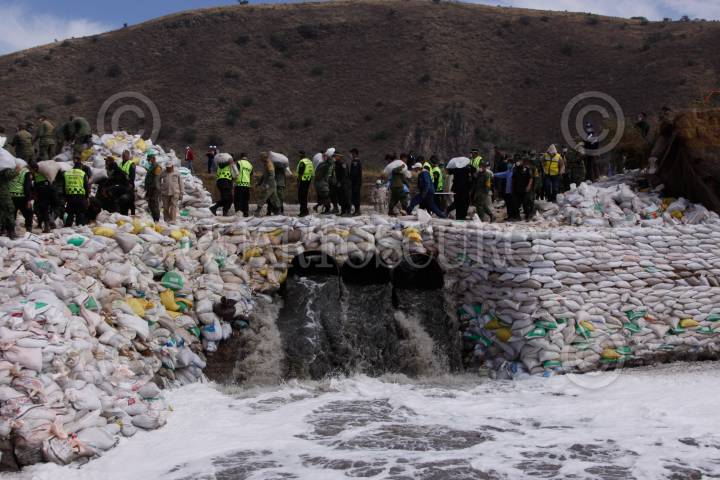 NEZAHUALCOYOTL, ESTADO DE MÉXICO, 08FEBRERO2010.- En la colonia Nezahualcoyotl, elementos de protección ni soldados han dezasolvado el agua que aun se encuentra en las calles debido al desbordamiento del Rió de los Remedios. FOTO: CUARTOSCURO.COM