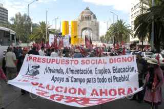 MÉXICO, D.F., 08FEBRERO2010.- Campesinos del Estado de Tlaxcala, se manifestaron marchando del Monumento a la Revolución a las instalaciones de la Secretaria de Desarrollo Social (SEDESOL). Exigiendo vivienda, alimentación, trabajo y educación. FOTO: LUIS CARBAYO/CUARTOSCURO.COM