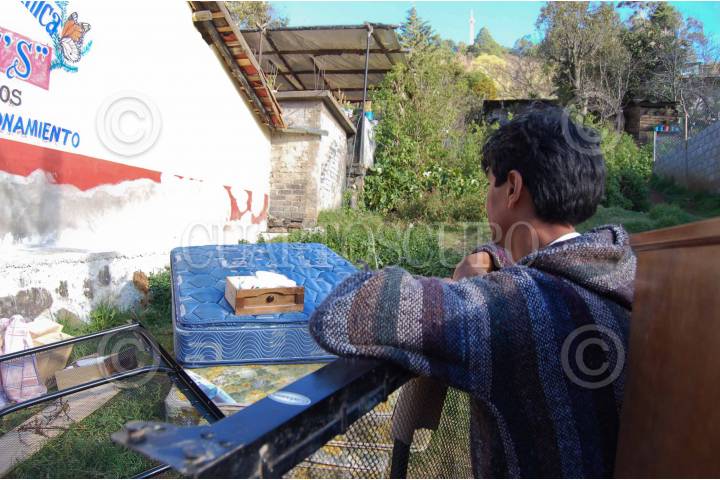 AGANGUEO, MICHOACAN, 08FEBRERO2010.- Familiares de personas que fueron sepultadas por las fuertes lluvias, inundaciones y piedras que cayeron del Cerro de Guadalupe, despiden los cuerpos que lograron ser rescatados debajo de los escombros y son velados en una capilla improvisada. FOTO: LEOVIGILDO GONZÁLEZ/CUARTOSCURO.COM
