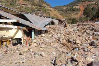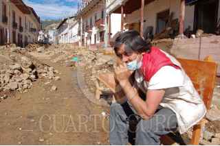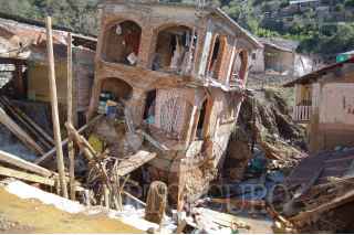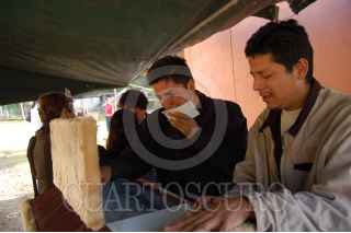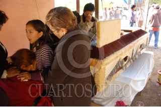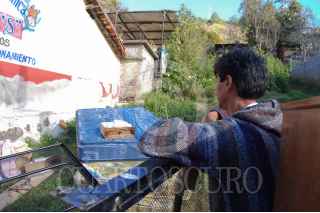 AGANGUEO, MICHOACAN, 08FEBRERO2010.- Familiares de personas que fueron sepultadas por las fuertes lluvias, inundaciones y piedras que cayeron del Cerro de Guadalupe, despiden los cuerpos que lograron ser rescatados debajo de los escombros y son velados en una capilla improvisada. FOTO: LEOVIGILDO GONZÁLEZ/CUARTOSCURO.COM