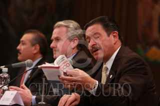 MÉXICO, D.F., 09FEBRERO2010.- Los Senadores Manlio Fabio Beltrones (PRI), Santiago Creel (PAN) y Carlos Navarrete (PRD),asistieron como presentadores del libro Un futuro para México de Jorge Castañeda y Héctor Aguilar Camín. FOTO: SÁSHENKA GUTIÉRREZ/CUARTOSCURO.COM