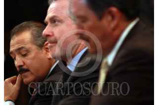 MÉXICO, D.F., 09FEBRERO2010.- Los Senadores Manlio Fabio Beltrones (PRI), Santiago Creel (PAN) y Carlos Navarrete (PRD),asistieron como presentadores del libro Un futuro para México de Jorge Castañeda y Héctor Aguilar Camín. FOTO: SÁSHENKA GUTIÉRREZ/CUARTOSCURO.COM