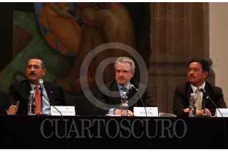 MÉXICO, D.F., 09FEBRERO2010.- Los Senadores Manlio Fabio Beltrones (PRI), Santiago Creel (PAN) y Carlos Navarrete (PRD),asistieron como presentadores del libro Un futuro para México de Jorge Castañeda y Héctor Aguilar Camín. FOTO: SÁSHENKA GUTIÉRREZ/CUARTOSCURO.COM