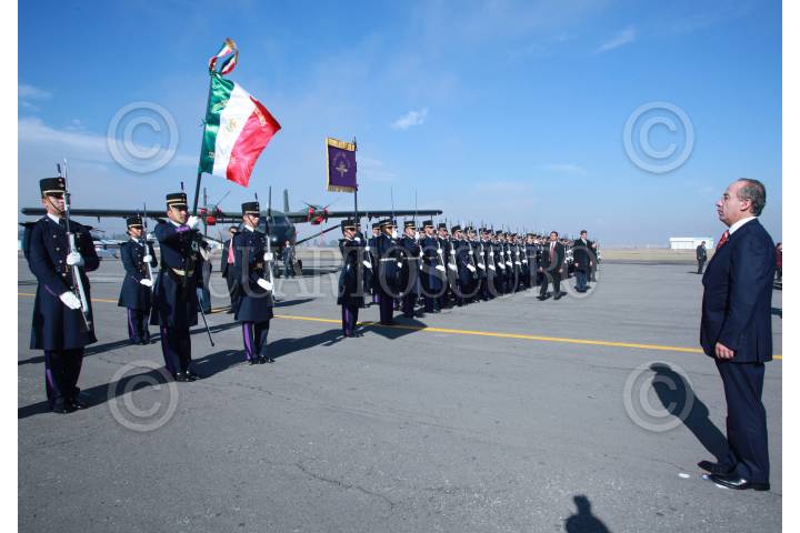 TECÁMAC, ESTADO DE MÉXICO, 10FEBRERO2010.- Felipe Calderón Hinojosa, Presidente de México, encabezó ceremonia conmemorativa del "XCV Aniversario de la Fuerza Aérea Mexicana", realizada en el campo militar número 37 Santa Lucía. FOTO: ALFREDO GUERRERO/CUARTOSCURO.COM