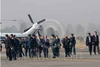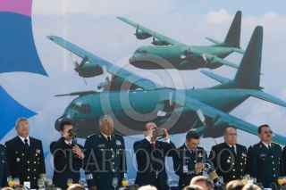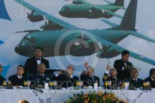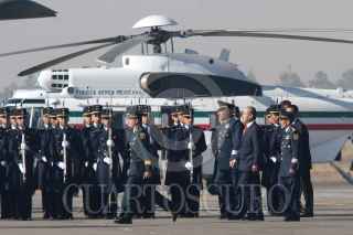 TECÁMAC, ESTADO DE MÉXICO, 10FEBRERO2010.- Felipe Calderón Hinojosa, Presidente de México, acompañado de Enrique Peña Nieto, Gobernador del Estado de México, Guillermo Galván Galván, Secretario de la Defensa Nacional y Leonardo González García, Comandante en Jefe de la Fuerza Aérea de México y Francisco Saynez Mendoza, titular de la Secretaria de Marina, encabezaron la ceremonia conmemorativa del “XCV Aniversario de la Fuerza Aérea Mexicana”, en la base aérea de Santa Lucia. FOTO: GUILLERMO PEREA/CUARTOSCURO.COM