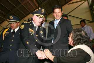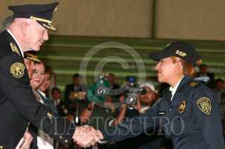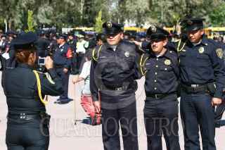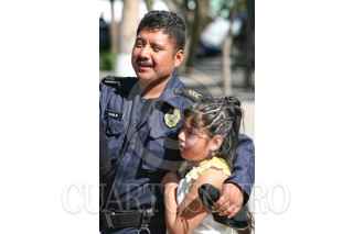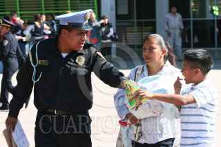 MÉXICO, D.F., 10FEBRERO2010.- Un policía come junto con su hijo una bolsa e frituras al termino de la ceremonia donde entregaron reconocimientos e incentivos a la eficacía policial, esto afuera del auditorio del Deportivo Los Galeana. FOTO: SAÚL LÓPEZ/CUARTOSCURO.COM