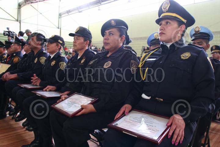 MÉXICO, D.F., 10FEBRERO2010.- Un policía come junto con su hijo una bolsa e frituras al termino de la ceremonia donde entregaron reconocimientos e incentivos a la eficacía policial, esto afuera del auditorio del Deportivo Los Galeana. FOTO: SAÚL LÓPEZ/CUARTOSCURO.COM
