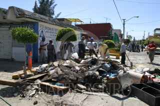 NEZAHUALCOYOTL, ESTADO DE MÉXICO, 10FEBRERO2010.- Un negocio ubicado en la colonia Impulsora muestra carteles que sus productos e instalaciones están limpios y desinfectados luego que la semana pasada se registraron inundaciones de aguas negras por el desbordamiento del Río de los Remedios. FOTO: RODOLFO ANGULO/CUARTOSCURO.COM