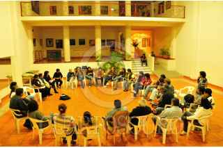 AJIJIC, JALISCO, 11FEBRERO2010.- La comunidad artística y literaria fue convocada por la nueva administración política del municipio de Chapala, en las instalaciones del centro cultural. Hector Hinojosa el nuevo coordinador administrativo, presentó proyectos, propuestas y sugerencia para el calendario 2010-2011, dejando en claro que ninguna ramas del arte quedara fuera. FOTO: MARIA DI PAOLA BLUM/CUARTOSCURO.COM