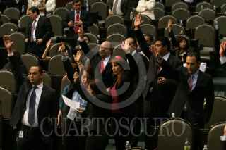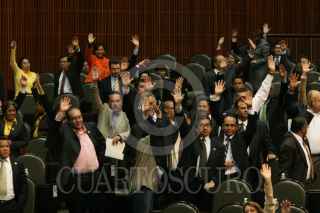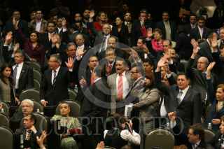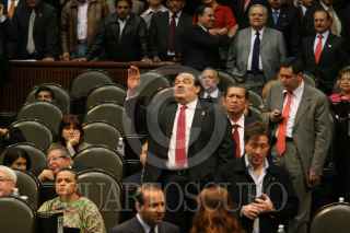 MÉXICO D.F., 11FEBRERO2010.- Diputados de la fracción del PAN, emiten su voto durante la sesión en la Cámara Baja, donde se aprobó la iniciativa que reforma el artículo 40 de la Constitución Política de los Estados Unidos Mexicanos; para elevar a rango constitucional el carácter laico del Estado. FOTO: GUILLERMO PEREA/CUARTOSCURO.COM