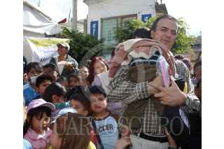 MÉXICO, D.F., 12FEBRERO2010.- Marcelo Ebrar Jefe de Gobierno dio banderazo a la jornada de pintura de fachadas de viviendas de la colonia El Arenal, afectadas por las lluvias de la semana pasada, durante el recorrido el Jefe de Gobierno cargo un pequeño que resulto afectado por las inundaciones en su colonia FOTO: SÁSHENKA GUTIÉRREZ/CUARTOSCURO.COM