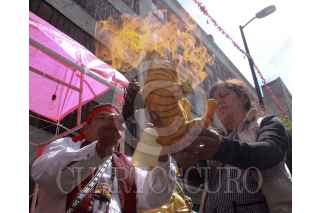 MÉXICO, D.F., 12FEBRERO2010.- Un hombre realiza una limpia a base de fuergo y ramos en el Barrio Chino a dos días de celebrarse el año nuevo Chino que en esta ocasión le corresponde al tigre, animal que augura un ciclo próspero. FOTO: SÁSHENKA GUTIÉRREZ/CUARTOSCURO.COM