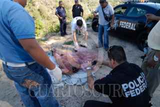 ACAPULCO, GUERRERO, 13FEBRERO2010.- El cuerpo sin vida y decapitado de un sujeto no identificado con señales de tortura fue encontrado en el kilómetro 39 de la carretera Acapulco-México. El hallazgo fue por elemento de la Policía Federal. FOTO: BERNANDINO HERNÁNDEZ/CUARTOSCURO.COM