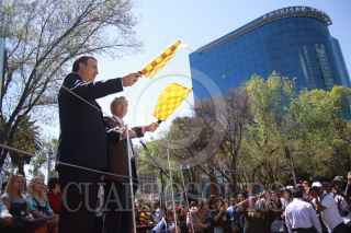 MÉXICO, D.F. 13FEBRERO2010.- Marcelo Ebrard Casaubon Jefe de Gobierno acompañado por Ying Hengming, embajador de China en México durante el baderazo de salida alos carros alegóricos y miembros de la comunidad China en México, que desfilaron sobre avenida Paseo de la Reforma, para celebrar el Año Nuevo Chino, que está dedicado al tigre. FOTO: SÁSHENKA GUTIÉRREZ/CUARTOSCURO.COM