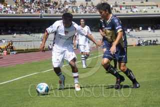 MÉXICO, D.F., 14FEBRERO2010.- Efrain disputa el Balon Elgabry Rangel Velarde durante el partido correspondiente de la jornada cinco del Torneo Bicentenario 2010, entre Pumas de la Unam y Estudiantes FOTO: SÁSHENKA GUTIÉRREZ/CUARTOSCURO.COM