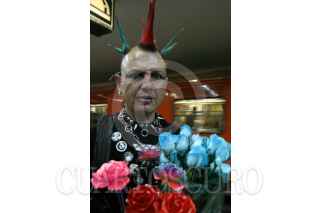 MÉXICO, D.F., 14FEBRERO2010.- Un joven que viaja en el Sistema de Transporte Colectivo Metro porta un cubre bocas para prevenir contagios de enfermedades o simplemente es parte del look que lo identifica entre las tribus urbanas de la ciudad de México como Punk. FOTO: MISAEL VALTIERRA/CUARTOSCURO.COM