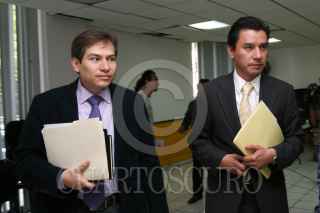 MÉXICO D.F., 15FEBRERO2010.- Manuel Oropeza Morales, Presidente del PRD D.F. acompañado de Jesús Valencia Guzmán, Secretario General de este partido, ofrecieron una conferencia donde dieron a conocer los pormenores de la denuncia que interpondrán en contra de la Asambleísta del PAN, Mariana Gómez del Campo por supuestos desvío de recursos. . FOTO: GUILLERMO PEREA/CUARTOSCURO.COM
