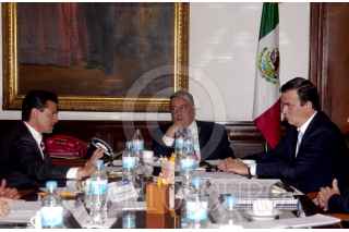 MÉXICO, D.F., 15FEBRERO2010.- Marcelo Ebrard Casaubon, jefe de Gobierno del Distrito Federal se reunio con el Secretario de Gobernación, Fernando Gómez Mont, el Gobernador del Estado de México Enrique Peña Nieto, en privado en la Secreraria de Gobernacion donde trataron temas como las lluvias que afectaron cuatro delegaciones. FOTO: CUARTOSCURO.COM