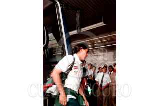 Francisco Palencia llega al aeropuerto internacional de la Ciudad de México para abordar el avión que llevará a la seleción mexicana a su encuentro definitivo con la seleción de Jamaica rumbo al Mundial de Japón 2002. Foto: Susana Navarrete/CUARTOSCURO.COM