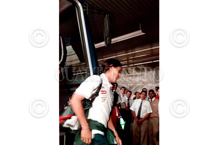 Francisco Palencia llega al aeropuerto internacional de la Ciudad de México para abordar el avión que llevará a la seleción mexicana a su encuentro definitivo con la seleción de Jamaica rumbo al Mundial de Japón 2002. Foto: Susana Navarrete/CUARTOSCURO.COM