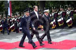 El presidente Vicente Fox, acompañado por los secretarios de la Defensa, Clemente Vega García y de la Marina, Marco Antonio Peyrot llegan a la guardia de honor en el monumento a los Niños Héroes con motivo del 156 aniversario de la gesta heroica. FOTO: Juan Pablo Zamora/CUARTOSCURO.COM