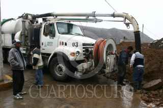 IXTAPALUCA, ESTADO DE MÉXICO, 18FEBRERO2010.- Trabajadores de ODAPAS desasolvan con camiones “Vactor” el drenaje de la colonia el Molino para que la basura no estanque el agua y se pueda evitar una inundación. FOTO: SAÚL LÓPEZ/CUARTOSCURO.COM